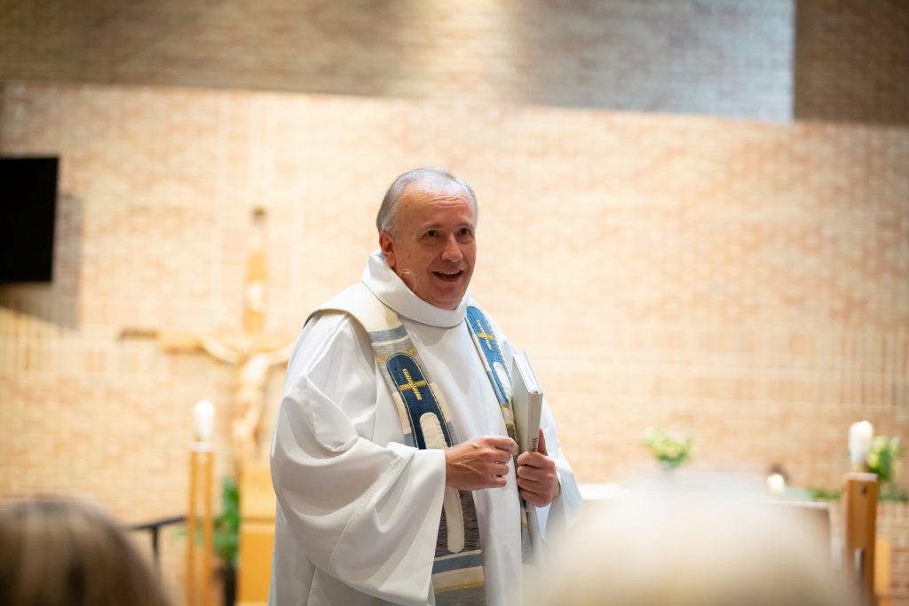 "Thank you Fr. Mark and Fr. Luis for making parents feel comfortable with their children at mass. Fr. Luis mentioned at mass this weekend how nice it was to hear children at mass (with a big smile). His smile at the kids when they "chat" is so kind. We so love you both. "