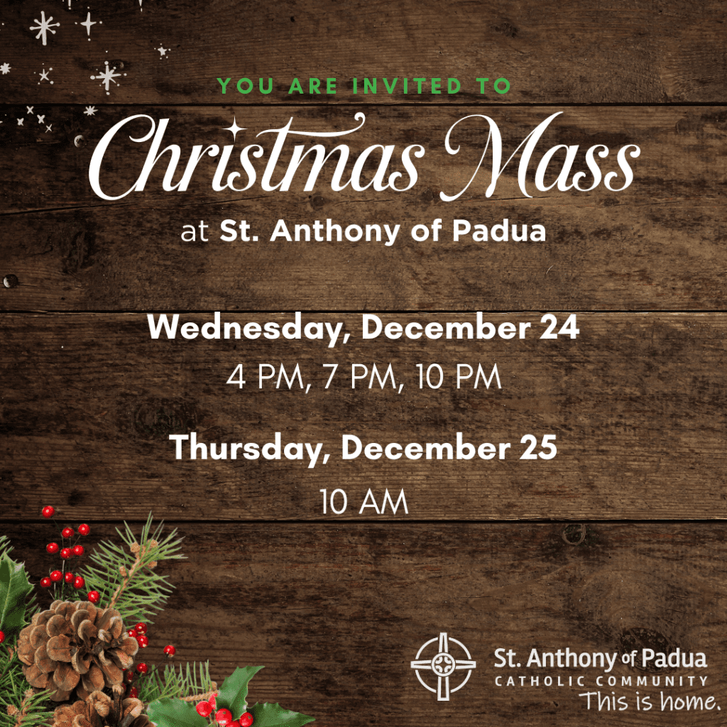 We would love to have you join us for Mass this Christmas at St. Anthony of Padua, in-person or online at saparish.com.
