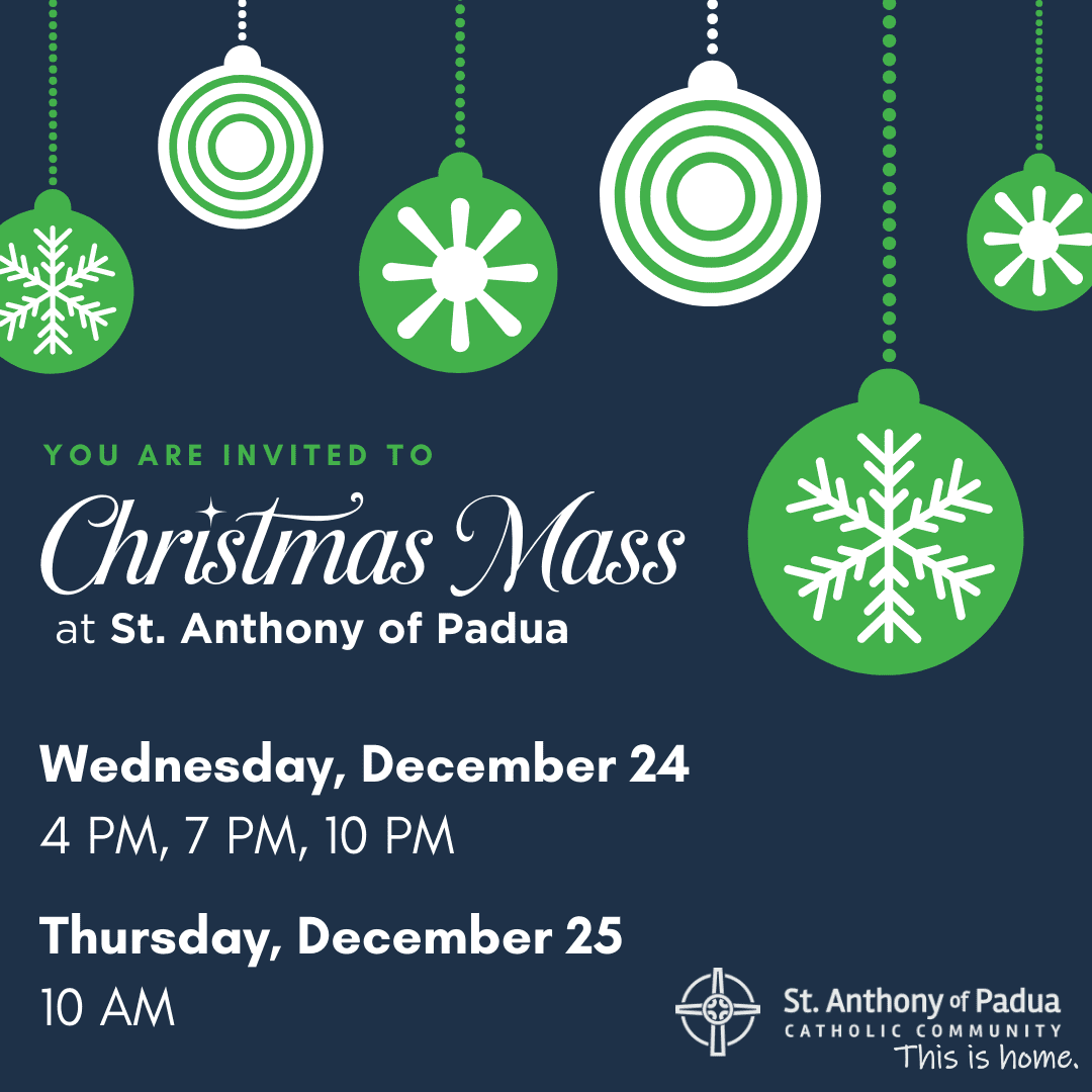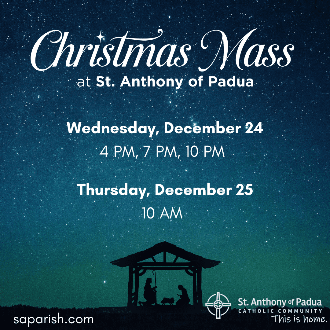 We would love to have you join us for Mass this Christmas at St. Anthony of Padua, in-person or online at saparish.com.