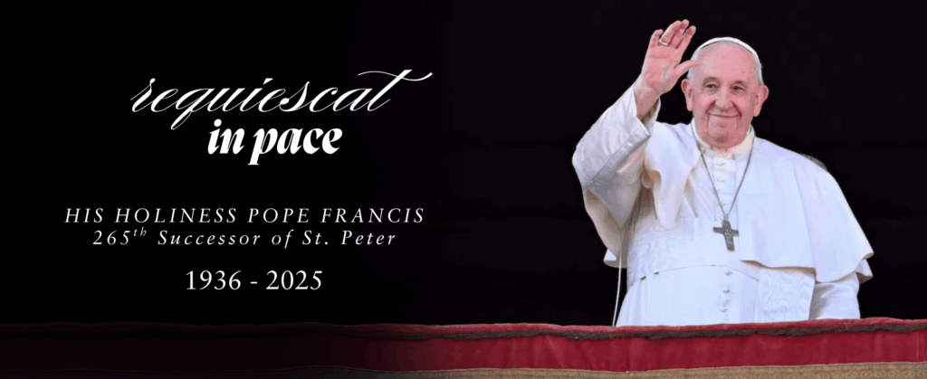 With hearts full of sorrow and gratitude, we mourn the passing of Pope Francis, our beloved Holy Father, who led the Church with humility, compassion, and unwavering faith. His life of service inspired countless souls around the world, and we now unite in prayer for the repose of his soul and the future of the Church he so faithfully shepherded.